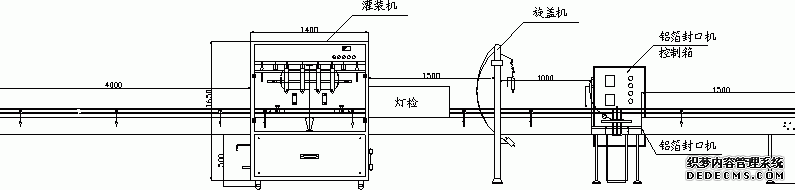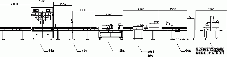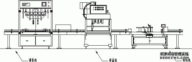方案設(shè)計(jì)一:灌裝機(jī)+壓蓋機(jī)+貼標(biāo)機(jī)+自動(dòng)膠帽熱縮機(jī)+噴碼機(jī)+封箱機(jī) | ||